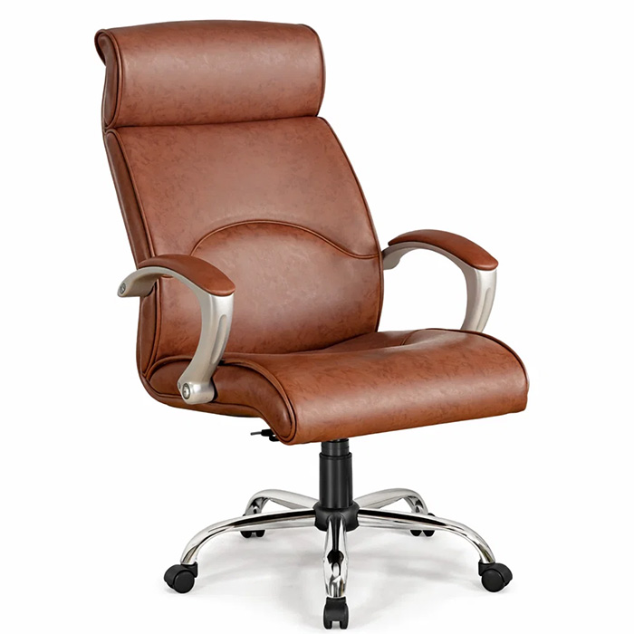 Chất liệu: Khung lưng bọc da PU, chân sao hợp kim/ mạ, tay nhựa đúc sơn bạc
